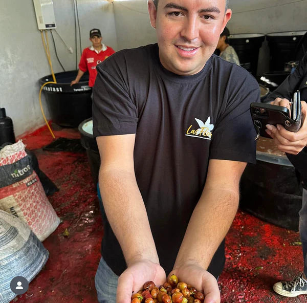 Today, the farm has various coffee varieties such as Java, Pink Bourbon, Maracaturra, Castillo, Colombia, Tabi, Caturra Chiroso, and Bourbon Sidra. Carlos, Jhoan, and Diego have begun developing reproducible profiles to highlight the potential of each variety. Jhoan took over the analysis of the experiments and the commercial management to make their joint work known.